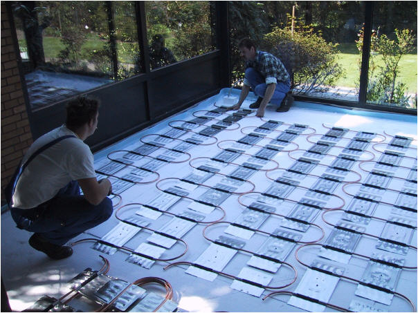 Die Dämmung liegt bereits - die Fußbodenheizung wird gelegt